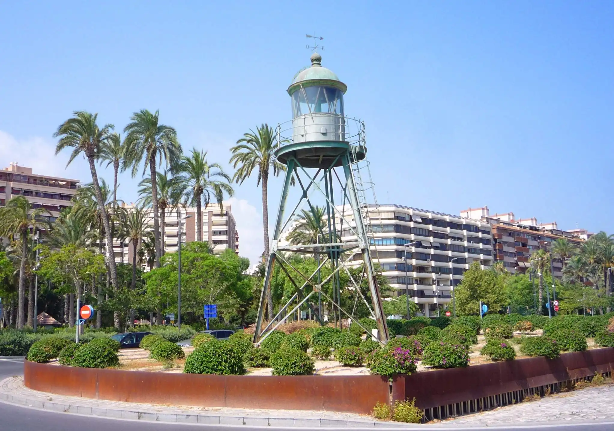 ![]() Antiguo faro del puerto de Alicante en su ubicación actual | ||