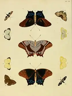 - ↑ D’abrera B. (1984). Butterflies of the Neotropical Region. Part 2. Danaidae, Ithomiidae, Heliconidae [sic] & Morphidae. Victoria: Hill House. pp. [xii]+173-384.