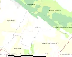 Antoigny era una comuna francesa situada en el departamento de Orne, de la región de Normandía, que el 1 de enero de 2016 pasó a ser una comuna delegada de la comuna nueva de La Ferté-Macé[3] al fusionarse con la comuna de La Ferté-Macé.