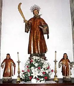 La iconografía habitual del santo le representa como un hombre joven, ataviado con la dalmática propia de los diáconos, portando casi siempre una palma alusiva al martirio, y, como atributo más característico, un cuchillo u hoja afilada clavado en su hombro o en la parte inferior del cuello. Su festividad se celebra el 2 de septiembre.