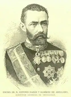 ![]() Retrato de Antonio Dabán y Ramírez de Arellano publicado en 1886 en La Ilustración Española y Americana | ||