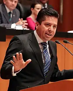 - ↑ Roberto Garduño y Enrique Méndez (12 de diciembre de 2013). «Diputado del PRD se desnuda en tribuna durante debate de la reforma energética». La Jornada. Archivado desde el original el 15 de diciembre de 2013. Consultado el 12 de diciembre de 2013.