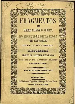 - Fragmentos de algunas plantas de Filipinas, no incluidas en la flora de las islas, de la primera ni segunda edición (Manila, 1851)