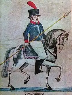 - ↑ Hijo de Bartolomé Rodríguez y de Silveria Ponce de León Montes de Oca. Fue voluntario recomendado y soldado distinguido del escuadrón de Húsares voluntarios, durante las Invasiones Inglesas, luego ascendido a subteniente del mismo cuerpo. Formó parte también del Tercio de Gallegos. Fue Comandante de la partida de persecución y captura de vagos y desertores en 1817, donde tuvo participación destacada. En 1818 fue teniente de artillería cívica, luego capitán de caballería de línea, capitán de partida celadora de 1820 a 1821, año en que pasó al Estado Mayor de Plaza hasta el 28 de febrero de 1822 en que fue reformado como capitán. Conf. Fos Medina, Juan Bautista, La descendencia de Ramón Rodríguez. Rodríguez Ponce de León, Rodríguez Grigera y Rodríguez Silveyra. Boletín del Instituto Argentino de Ciencias Genealógicas nro. 284, tomo 37, noviembre 2017, págs. 20 y 21. Volver arriba↑