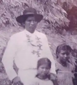 Antonio Saldaña y dos de sus hijas hacia 1900. | ||