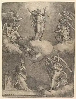 Diego Angulo apuntó a la influencia en la Virgen de un grabado sobre un mismo tema, obra de Battista Franco.