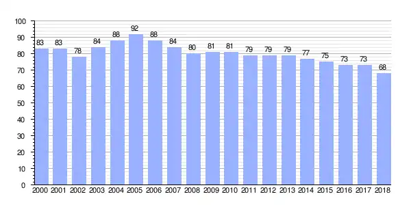 | Gráfica de evolución demográfica de Anzobre entre 2000 y 2018 |