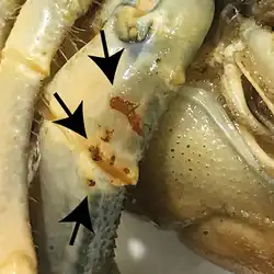 - ↑ Royo, F.; Gironés, O.; Diéguez Uribeondo, J.; de Blas, I. y Muzquiz, J.L. (2001). «Influencia de la edad en la susceptibilidad a la afanomicosis del cangrejo señal, Pacifastacus leniusculus». AquaTIC (13).