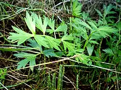 Tiene hojas de variadas formas, con folíolos dentados y posee un fuerte aroma a apio.[1]