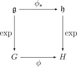 Sea un homomorfismo del grupo de Lie y sea su derivada en la identidad. Entonces el siguiente diagrama conmuta:[6]