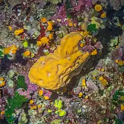 De color amarillo, vive en zonas sombrías, su base de unos 30 cm se adhiere a una roca o similar y proyecta ramas tubulares de 6 cm por 2 cm. Carece de espículas y se sostiene gracias a fibras de espongina. El agua se filtra desde sus poros basales llamados ostia a los sitiados en pequeñas fisuras arriba de los procesos en forma de dedos, osculus.