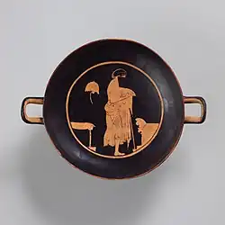 - ↑ «Terracotta kylix (drinking cup), ca. 500–490 B.C. Attributed to Apollodoros» (en inglés). Consultado el 10 de marzo de 2021.