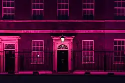![]() El número 10 de Downing Street se ilumina de color rosa como muestra de respeto y solidaridad por los incidentes en Southport. | ||
