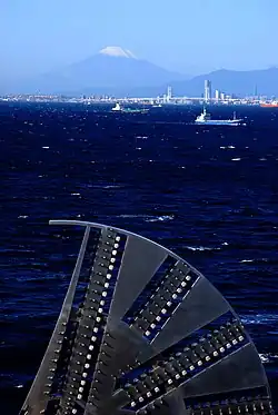Vista del monte Fuji y de la ciudad de Yokohama desde el Umihotaru