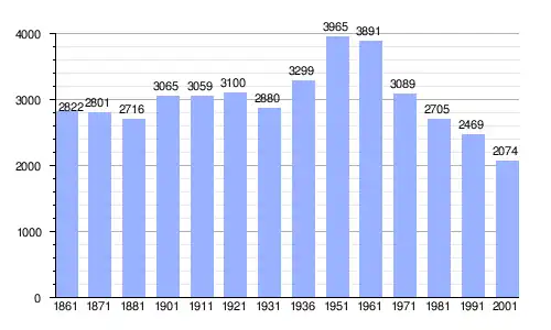 | Gráfica de evolución demográfica de Aquilonia entre 1861 y 2001 |
