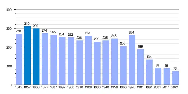 Gráfica de evolución demográfica de Arévalo de la Sierra[8]​ entre 1842 y 2021