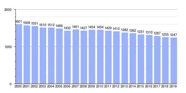 | Gráfica de evolución demográfica de Araño entre 2000 y 2019 |