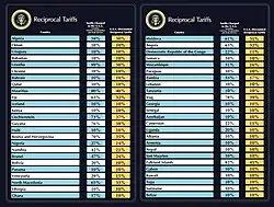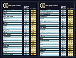 - ↑ Tariff was originally 34%, but was later increased by Trump