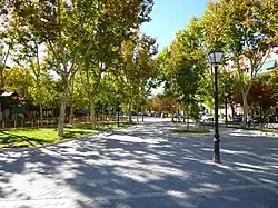Aranjuez es un municipio y ciudad española en el extremo sur de la Comunidad de Madrid, cabeza del partido judicial del mismo nombre.[7]​ Se encuentra en un ancho valle, junto a la confluencia de los ríos Tajo y Jarama, bordeado por un conjunto de cerros y mesetas que alcanzan los 630 metros de altitud.[8]​ Además de los cauces naturales, posee una extensa red de canales, acequias y presas históricas que, tradicionalmente, han propiciado los cultivos de regadío, como frutales y hortalizas, entre los que destacan fresas y espárragos.[9]​ A nivel medioambiental, buena parte del término municipal forma parte de la zona especial de conservación Vegas, cuestas y páramos del sureste de Madrid,[10]​ en la cual destacan la reserva natural del Carrizal de Villamejor,[11]​ y la reserva del Regajal-Mar de Ontígola, que incluye el humedal del Mar de Ontígola y la finca El Regajal.[11]