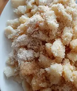 Desde la período socialista en Checoslovaquia es conocida también una receta por halušky de tvaroh y sémola cubierto con pan rallado dulce, que se cubre con mantequilla, llamada zlaté halušky (AFI: [ˈzlateː ˈɦaluʂki], en español: halušky dorados). Esta receta se utiliza a menudo en los comedores escolares checos o eslovacos.