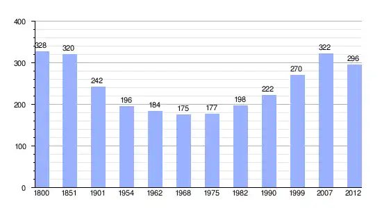 | Gráfica de evolución demográfica de Arbérats-Sillègue entre 1800 y 2012 |