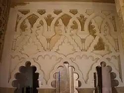 La aplicación del arco angrelado, en portadas, arcosolios, et., viene tanto desde la arquitectura hispano-árabe, como en el Palacio de la Aljafería de Zaragoza, hasta la arquitectura gótica, presente en diversos puntos de la geografía ibérica como en el Monasterio de Batalha en Portugal.