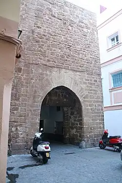 El arco del Pópulo en la ciudad de Cádiz (España) es la primitiva Puerta del Mar, pues por ella se accedía a la zona portuaria, y estaba flanqueada por dos cubos. A comienzos del siglo XVII se construyó ante ella la capilla de Nuestra Señora del Pópulo, que le ha dado el aspecto de pasadizo que presenta en la actualidad. Las características del paramento interior coinciden con las técnicas edilicias de las murallas islámicas de los siglos X y XI, mientras que el arco, enjarjado, es muy posible que originalmente fuese de herradura. La disposición de sus dovelas permite situarlo en el siglo XII, en época almohade, como todo el perímetro murado original.