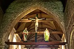 En la arquitectura medieval, el arco de la entrada del coro, normalmente el arco del crucero oriental, se denomina arco triunfal. A veces se caracterizaba por tener una "cruz triunfal" en el interior y/o rematada por una espadaña en el exterior. A veces también se denomina arco triunfal al arco del crucero occidental, especialmente cuando adopta la forma de tres arcos.