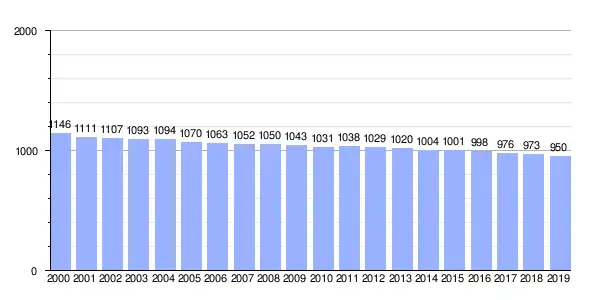 | Gráfica de evolución demográfica de Ardemil entre 2000 y 2019 |