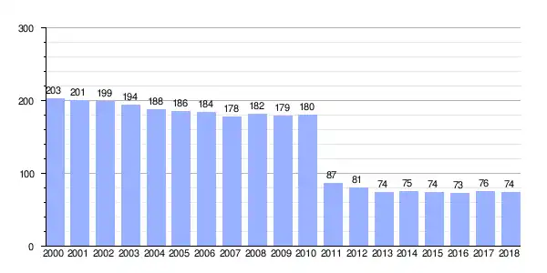 | Gráfica de evolución demográfica de Ardesende entre 2000 y 2018 |