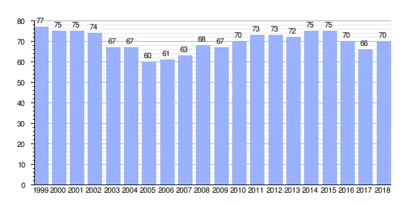 | Gráfica de evolución demográfica de Ardexurxo entre 1999 y 2018 |