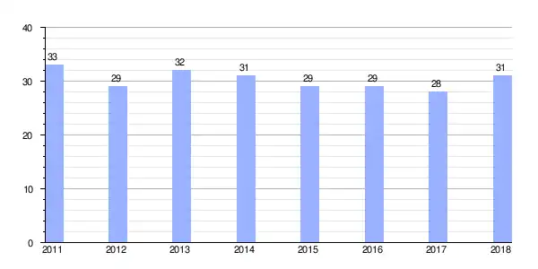 | Gráfica de evolución demográfica de Ardilleiro Grande entre 2011 y 2018 |