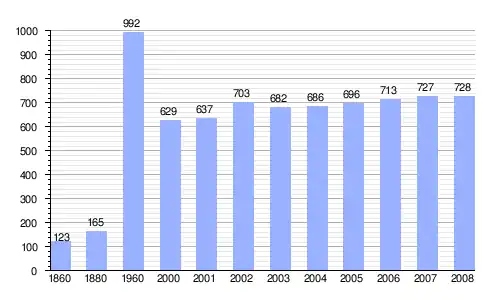 | Gráfica de evolución demográfica de Arenales de San Gregorio entre 1860 y 2008 |