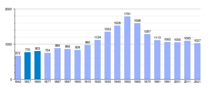 | Gráfica de evolución demográfica de Arenas de San Juan[2] entre 1842 y 2021 |