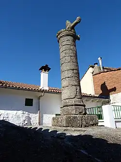 - ↑ Cadiñanos Bardeci, 2002, pp. 115-130: «Su picota es prácticamente igual a la de Mombeltrán. Consta de un escalón, plinto poligonal, y un elemento de transición del fuste. Ha perdido dos brazos y parte del coronamiento».