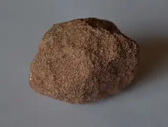 - Los granos de estructura lítica (también llamados fragmentos líticos o clastos líticos) son fragmentos de roca madre antigua que no se han desgastado hasta convertirse en granos de minerales individuales.[16] Los fragmentos líticos pueden ser cualquier roca ígnea, metamórfica o sedimentaria de grano fino o grueso,[16] aunque los fragmentos líticos más comunes encontrados en las rocas sedimentarias son clastos de rocas volcánicas y metamórficas.[16].