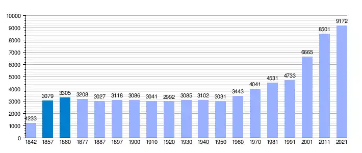 | Gráfica de evolución demográfica de Arenys de Munt[3] entre 1842 y 2021 |
