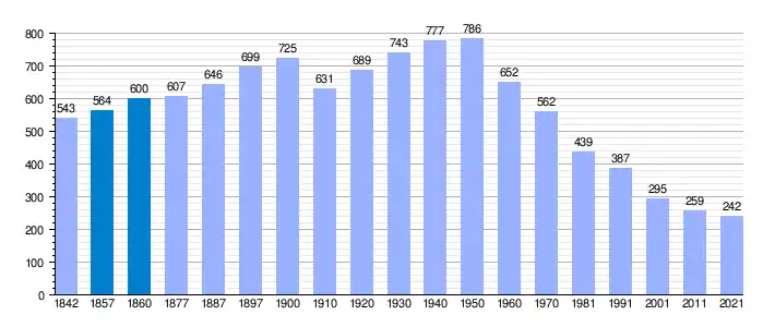 | Gráfica de evolución demográfica de Arenzana de Abajo[3] entre 1842 y 2021 |