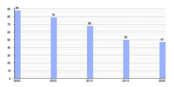 | Gráfica de evolución demográfica de Argomoso entre 2000 y 2020 |
