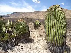 - ↑ «Punto de acuerdo, a fin de exhortar a la Semarnat y la Profepa a emprender acciones dirigidas a cumplir la NOM-059-SEMARNAT-2010 para proteger la especie Echinocactus platyacantus y evitar su saqueo en la reserva de la biosfera Sierra Gorda de Guanajuato, suscrita por el diputado Ariel Rodríguez Vázquez, del Grupo Parlamentario de Movimiento Ciudadano».