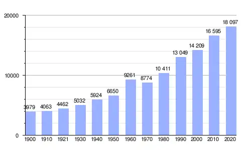 | Gráfica de evolución demográfica de Ario de Rosales entre 1900 y 2020 |