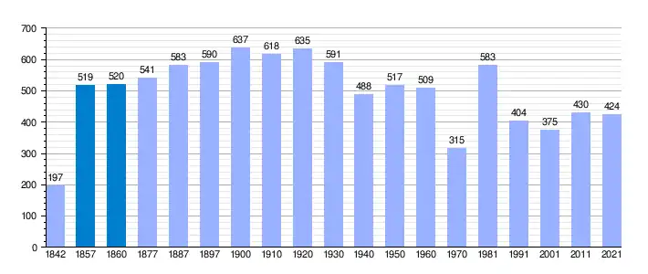 | Gráfica de evolución demográfica de Arlanzón[6] entre 1842 y 2021 |
