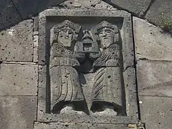 Relieves excavados de Smbat y Gurgen Bagratuni, patronos de Sanahin y Haghpat, en Sanahin.