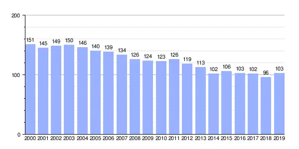 | Gráfica de evolución demográfica de Armental entre 2000 y 2019 |