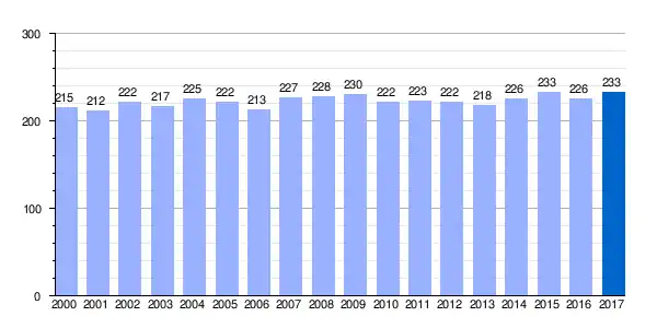 | Gráfica de evolución demográfica de Armentia[9] entre 2000 y 2017 |