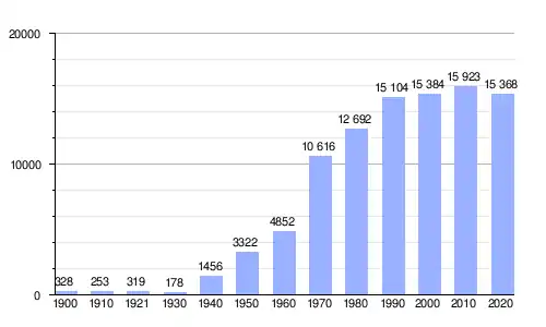| Gráfica de evolución demográfica de Ciudad de Armería entre 1900 y 2020 |