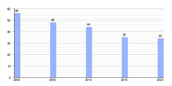 | Gráfica de evolución demográfica de Arnado entre 2000 y 2023 |