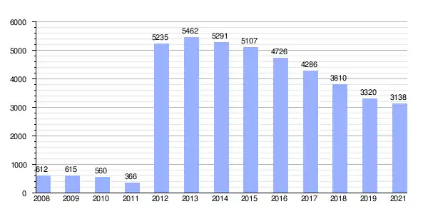 | Gráfica de evolución demográfica de Aroche[15] entre 1842 y 2021 |