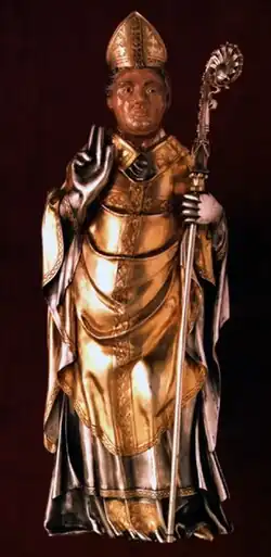 - En una cara, encima: San Miguel, María Magdalena, un obispo / San Ferreol, Santa Tecla, San Francisco de Asís; abajo: los santos obispos Nicolás, Eloi y Martí / San Benito, San Jaime y San Pedro.