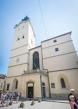 La construcción de la iglesia catedral de Leópolis se inició inmediatamente después de la petición del rey Casimiro al papa Urbano V, entre 1363 y 1368. En 1405 se completó el presbiterio, consagrado por Maciej Janina, obispo de Przemyśl. El edificio fue terminado en 1479 y consagrado dos años más tarde.[14]